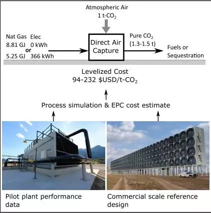 這家基于一種名為“直接空氣捕捉”概念的試驗(yàn)工廠,目前很大一個(gè)角色是為經(jīng)濟(jì)分析提供基礎(chǔ),包括來(lái)自所有主要部件的商業(yè)供應(yīng)商的成本估算。最新的這篇論文中指出,根據(jù)不同的設(shè)計(jì)方案和經(jīng)濟(jì)假設(shè),從空氣中捕捉1噸二氧化碳的成本在94美元至232美元之間。