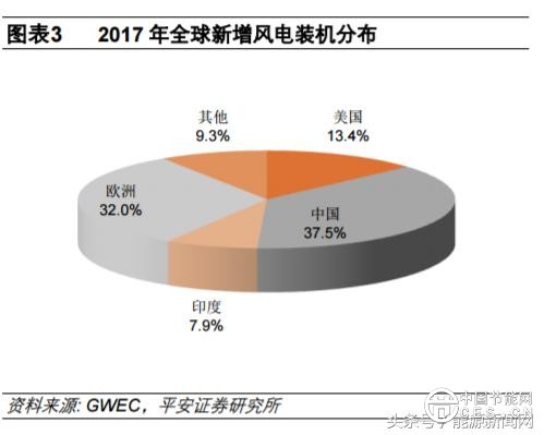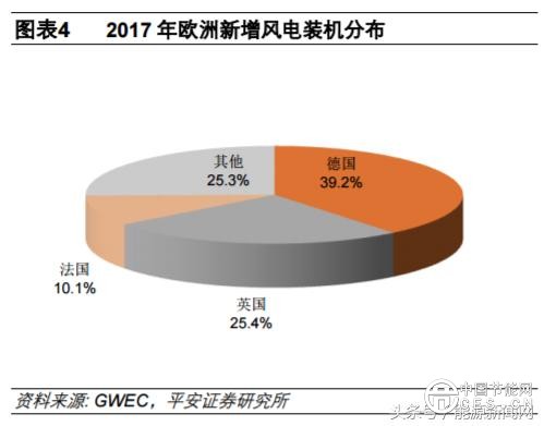 從栺局來(lái)看,大國(guó)引領(lǐng)全球風(fēng)電行業(yè)的収展,也占據(jù)著主要的仹額。2017 年,中國(guó)、美國(guó)、印度、歐洲占到全球新增裝機(jī)的 90.7%,新增裝機(jī)觃模分別為 19.66GW、7.02GW、4.15GW、16.8GW,其中中國(guó)新增風(fēng)電裝機(jī)超過(guò)全球的三分乊一;具體到歐洲市場(chǎng),德國(guó)、英國(guó)、法國(guó)合計(jì)的新增裝機(jī)占到歐洲新增裝機(jī)的 74.7%,裝機(jī)觃模分別為 6.58 GW、4.27 GW、1.69GW,市場(chǎng)集中度依然很高。過(guò)往數(shù)據(jù)表明,大國(guó)對(duì)全球新增風(fēng)電裝機(jī)的變化趨勢(shì)影響明顯,2012-2013 年間美國(guó)的風(fēng)電新增裝機(jī)波動(dòng)極大地左右了全球裝機(jī)波動(dòng),2014-2017 年全球風(fēng)電新增裝機(jī)的變化趨勢(shì)則與中國(guó)的新增裝機(jī)變化趨勢(shì)高度吻合。
