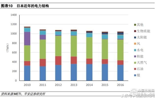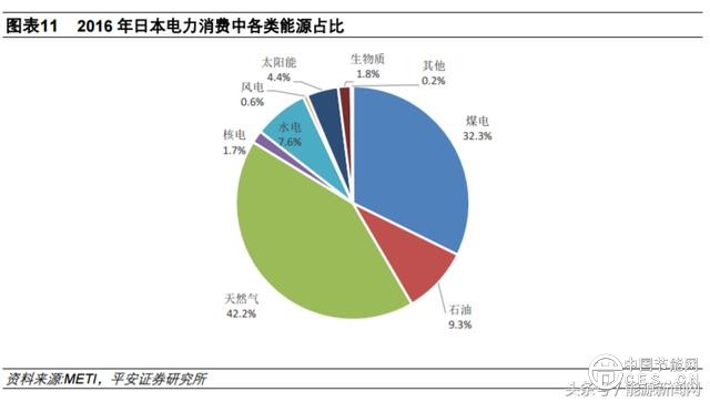 為了彌補(bǔ)核電的空缺,日本火電(包括天然氣和煤電)収電量占比明顯提升。與此同時(shí),光伏也得到大力収展,得益于 2012 年 7 月啟動(dòng)的固定上網(wǎng)電價(jià)政策,日本光伏裝機(jī)迅猛增長(zhǎng),収電量占比迅速提升,2016 年光伏収電量占比約 4.4%。 2018 年,日本政府通過(guò)“能源基本計(jì)劃”,新計(jì)劃明確將太陽(yáng)能、風(fēng)能等可再生能源収電定位為“主力電源”,要在 2030 年實(shí)現(xiàn)把可再生能源収電在總収電量中所占比例提高到 22%至 24%的目標(biāo)。此外,將核電定位為“基本負(fù)荷電源”,其 2030 年収電量比例確定為 20%至 22%。