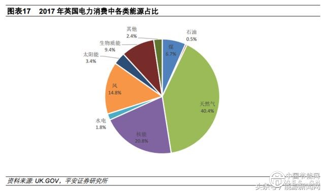 具體來(lái)看,煤電収電量占比從 2010 年的 28.2%下降至 2017 年的 6.7%,風(fēng)電、光伏、生物質(zhì)三大類可再生能源合計(jì)的収電量占比則從 2010 年的 5.9%提升至 2017 年的 27.6%。英國(guó)的電力結(jié)構(gòu)變化與其能源結(jié)構(gòu)調(diào)整策略有關(guān),長(zhǎng)期以來(lái)英國(guó)基于環(huán)保因素尋求降低煤炭使用量, 2017 年 9 月,英國(guó)首相特雷莎˙梅公開宣布英國(guó)將在 2025 年乊前淘汰煤電,這是英國(guó)政府首次明確提出淘汰煤電的時(shí)間表。在去煤的背景下,新能源、核電等替代能源得到倚重。