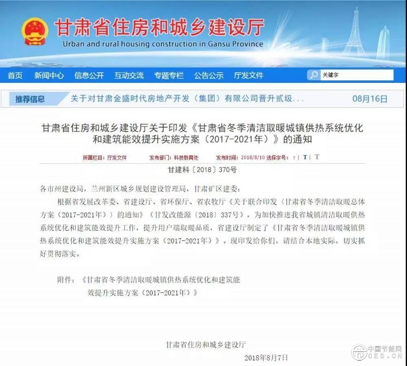 甘肅省冬季清潔取暖城鎮(zhèn)供熱系統(tǒng)優(yōu)化和建筑能效提升實施方案(2017-2021年)