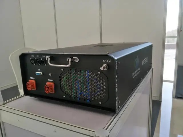 “5kW甲醇重整制氫燃料電池模塊采用蒸汽重整法將甲醇與水的混合溶液中氫元素轉(zhuǎn)換氫氣,氫氣與氧氣發(fā)生電化學(xué)反應(yīng)發(fā)電?!睋?jù)中氫新能董事長周明強介紹,整個反應(yīng)過程無壓力容器,氫氣隨產(chǎn)隨用不儲氫,安全可靠,具有噪音低、自動化程度高、小型高效、持續(xù)工作能力強等特點,在軍民融合發(fā)電站系統(tǒng)、燃料電池動力系統(tǒng)、移動充電樁系統(tǒng)等領(lǐng)域有廣闊應(yīng)用前景。
