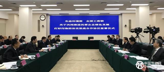 核心提示:今天,生態(tài)環(huán)境部和全國工商聯(lián)簽署了“關(guān)于共同推進(jìn)民營企業(yè)綠色發(fā)展 打好污染防治攻堅戰(zhàn)”的合作協(xié)議,聯(lián)合出臺《關(guān)于支持服務(wù)民營企業(yè)綠色發(fā)展的意見》,將通過健全市場準(zhǔn)入機(jī)制、完善環(huán)境法規(guī)標(biāo)準(zhǔn)、規(guī)范環(huán)境執(zhí)法行為、強(qiáng)化科技支持服務(wù)、完善環(huán)境經(jīng)濟(jì)政策措施,支持民營企業(yè)提高綠色發(fā)展水平、營造公平競爭市場環(huán)境。
