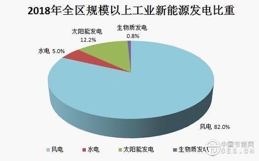 2018年,全區(qū)規(guī)模以上工業(yè)新能源發(fā)電量695.1億千瓦時,比上年增長14.8%,占全區(qū)發(fā)電量的14.4%,比上年提高0.8個百分點。其中:風(fēng)力發(fā)電570.3億千瓦時,比上年增長14.4%;太陽能發(fā)電84.9億千瓦時,比上年增長2.9%;水力發(fā)電34.7億千瓦時,比上年增長85.1%;生物質(zhì)發(fā)電5.2億千瓦時,比上年下降10.5%。