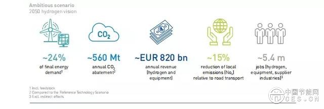 2019年2月12日,燃料電池和氫能聯(lián)合組織(FCH JU)在發(fā)布的“ 歐洲氫能路線圖:歐洲能源轉(zhuǎn)型的可持續(xù)發(fā)展途徑”。該路線圖根據(jù)17個歐洲主要工業(yè)參與者的意見制定,為2050年歐洲大規(guī)模部署氫和燃料電池奠定了基礎(chǔ),并量化了相關(guān)社會經(jīng)濟(jì)影響。