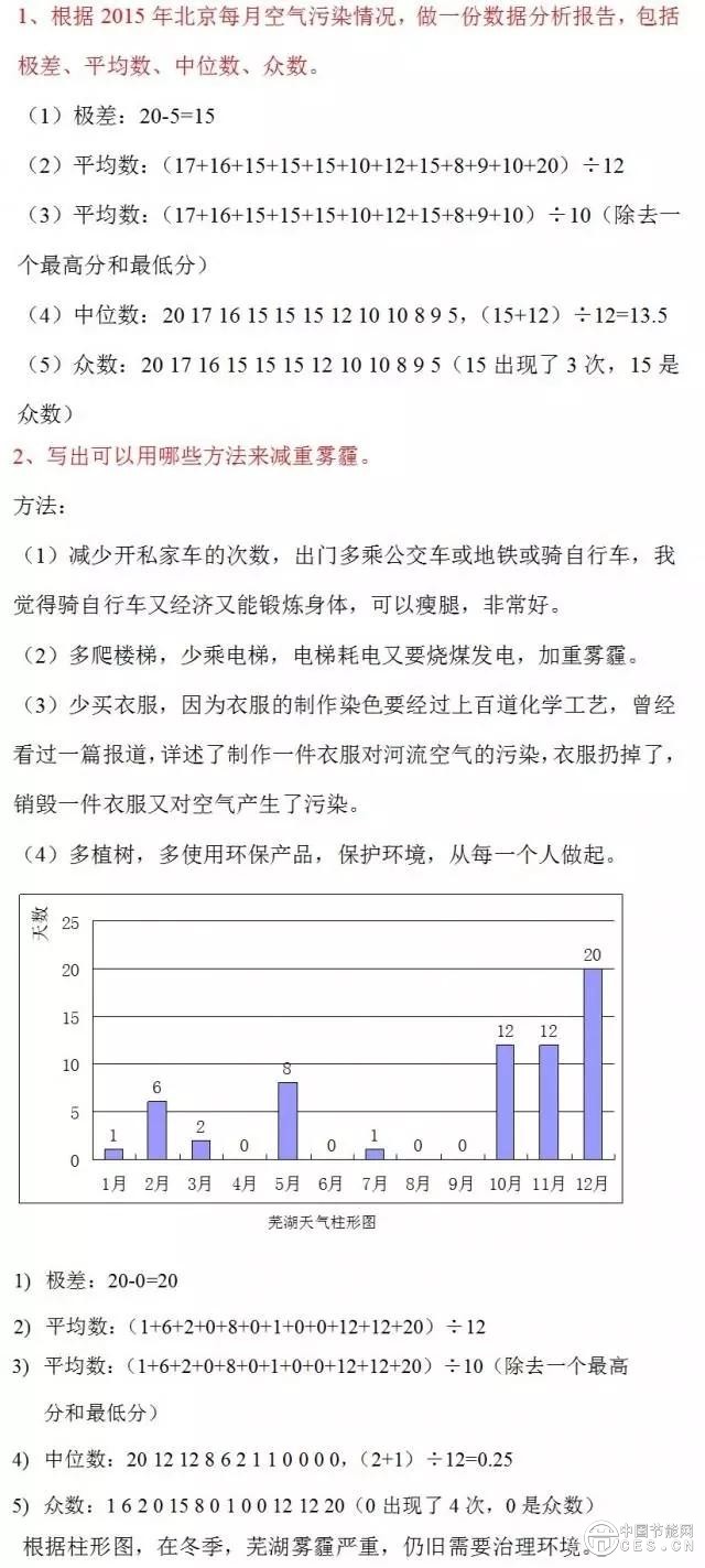 趙同學(xué)通過認(rèn)真學(xué)習(xí)課程,理解了統(tǒng)計學(xué)四種數(shù)值的計算方法,并使用它計算北京每月霧霾狀況的數(shù)據(jù)分析報告。他對減輕霧霾提出了自己的建議,其中既有“開源”的方法,也有“節(jié)流”的方法。減輕霧霾污染,可以從減輕污染源著手,也可以從培育樹木來吸收霧霾,這體現(xiàn)了他多角度解決問題的能力。