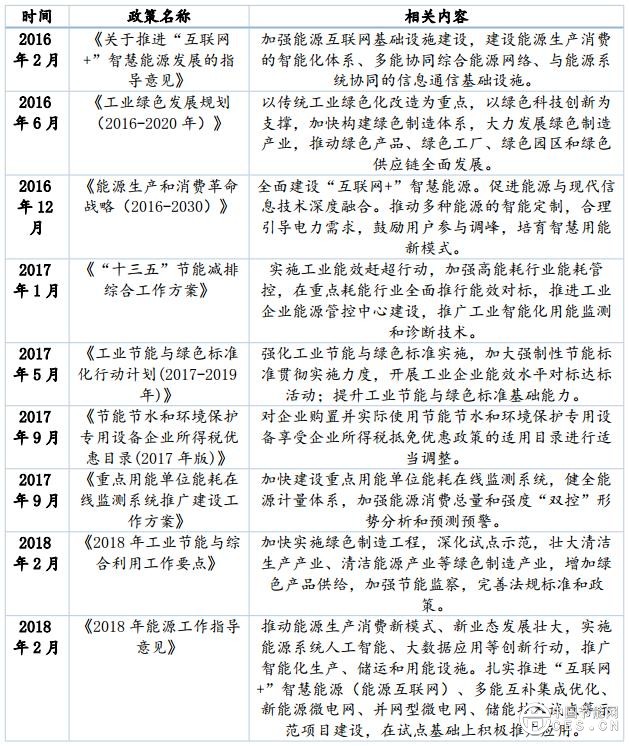 表1 2016-2018年工業(yè)節(jié)能與智慧能源發(fā)展主要政策