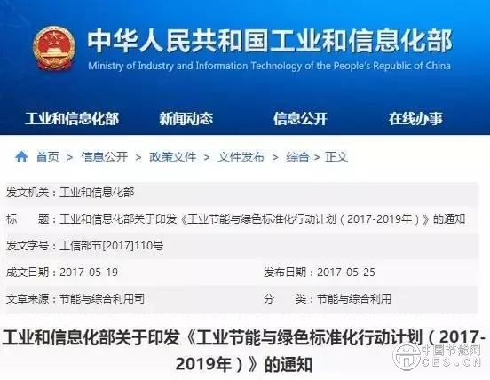 5月25日,工信部印發(fā)《工業(yè)節(jié)能與綠色標準化行動計劃(2017-2019年)》(簡稱《行動計劃》)提出,到2020年,在單位產(chǎn)品能耗水耗限額、產(chǎn)品能效水效、節(jié)能節(jié)水評價、再生資源利用、綠色制造等領域制修訂300項重點標準,基本建立工業(yè)節(jié)能與綠色標準體系。