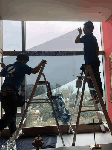 (中凌專業(yè)施工團(tuán)隊(duì),撕掉3M吸熱膜,換上中凌反射膜)