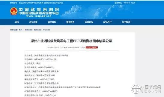 2月27日,中國政府采購網發(fā)布深州市生活垃圾焚燒發(fā)電工程PPP項目資格預審結果公示。公示顯示,中電國際新能源控股有限公司、重慶三峰環(huán)境集團股份有限公司、中國環(huán)境保護集團有限公司和北京首創(chuàng)環(huán)境投資有限公司通過該項目資格預審。