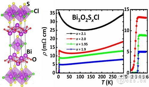圖1. Bi3O2S2Cl的晶體結(jié)構(gòu)以及自摻雜引起的超導(dǎo)電性