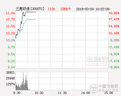 金融界網(wǎng)站3月4日訊 今日三聚環(huán)保開盤報(bào)10.1元,截止09:52分,該股漲9.96%報(bào)11.04元,封上漲停板。