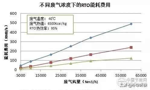 下圖是風(fēng)量、濃度不同時(shí)的RTO能耗費(fèi)用估算值。