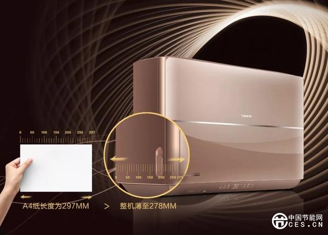 雙膽并聯(lián)和保溫層減薄的雙重作用,讓電熱水器整機厚度變得纖薄。以50L容積卡薩帝電熱水器天沐PRO為例,厚度只有278mm,小于一張A4紙長度,比傳統(tǒng)電熱水器瘦身一半,居行業(yè)纖薄之首!