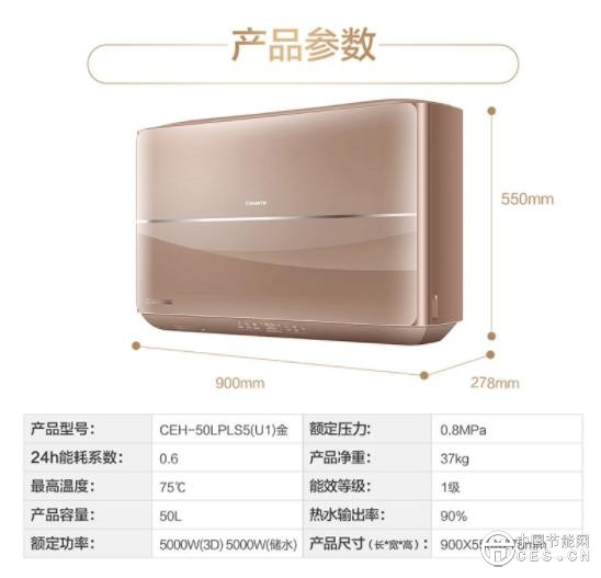 從上圖卡薩帝電熱水器天沐PRO的產(chǎn)品參數(shù)中,我們可以清楚的看到其能效等級是1級,24h固有能耗系數(shù)是0.6,熱水輸出率是90%。其中,熱水輸出率90%,遠(yuǎn)超國家70%的一級能效標(biāo)準(zhǔn)線。