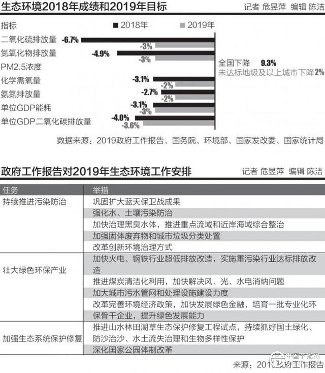 面對(duì)經(jīng)濟(jì)下行壓力加大和不確定性因素增多的嚴(yán)峻形勢,政府工作報(bào)告仍將“加強(qiáng)污染防治和生態(tài)建設(shè)”單獨(dú)成篇,強(qiáng)調(diào)要繼續(xù)打好污染防治攻堅(jiān)戰(zhàn)。其中,持續(xù)推進(jìn)污染防治、壯大綠色環(huán)保產(chǎn)業(yè)、加強(qiáng)生態(tài)系統(tǒng)保護(hù)修復(fù)是2019年三大任務(wù)。
