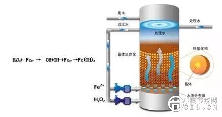 典型的Fenton試劑是由Fe2+催化H2O2分解產(chǎn)生˙OH,從而引發(fā)有機(jī)物的氧化降解反應(yīng)。由于Fenton法處理廢水所需時(shí)間長(zhǎng),使用的試劑量多,而且過量的Fe2+將增大處理后廢水中的COD并產(chǎn)生二次污染。