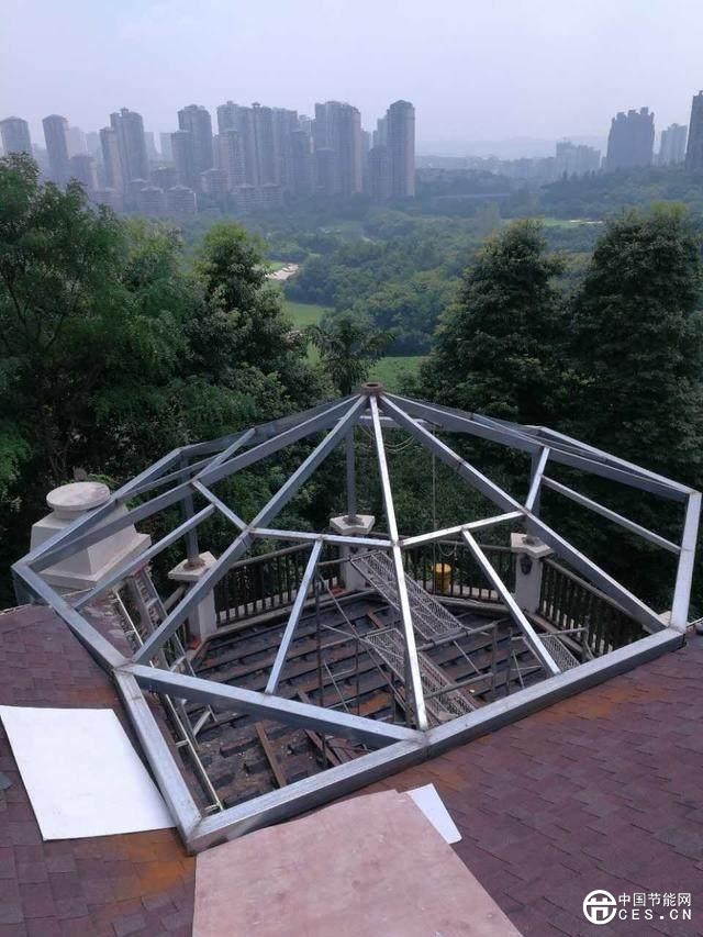 它安裝起來麻煩嗎?一點也不,安裝過程跟普通的陽光房差不多,只要將它安裝在骨架的最高點就好,建議放在屋頂?shù)恼虚g。這樣沖洗時水才能均勻地噴灑在屋頂?shù)拿恳粔K玻璃上面。