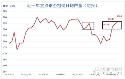 從記錄數(shù)據(jù)來看,2月份重點(diǎn)鋼企粗鋼日均產(chǎn)量達(dá)到194.3萬噸,與去年10月均值194.8萬噸相當(dāng);換句話說,盡管2月屬于鋼市傳統(tǒng)淡季,還有春節(jié)假期,但是,重點(diǎn)鋼企粗鋼日均產(chǎn)量卻與去年金十月旺季的產(chǎn)量相當(dāng),這個2月重點(diǎn)鋼企的生產(chǎn)效率之高實(shí)在讓人驚訝。
