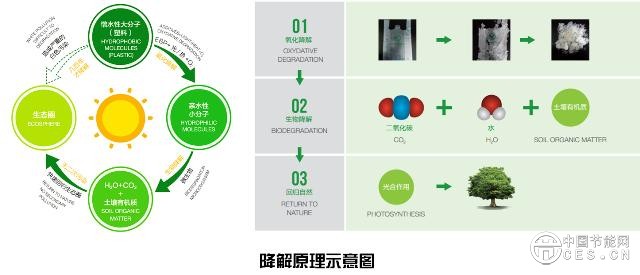 該產(chǎn)品依托公司研發(fā)的生態(tài)塑料技術(shù),產(chǎn)品以全新聚乙烯為基材,通過(guò)EBP降解母料的添加共混吹塑而成,產(chǎn)品延續(xù)了聚乙烯材料的物化特性,在降解發(fā)生之前產(chǎn)品使用性能與普通塑料袋完全一致,同時(shí)十年研發(fā)的配方技術(shù)使得全降解塑料袋降解安全期可調(diào)控,充分考慮到用戶(hù)的倉(cāng)儲(chǔ)、運(yùn)輸?shù)葧r(shí)間,有效防止提前降解,確保產(chǎn)品使用性能,而在產(chǎn)品使用丟棄后進(jìn)入自然環(huán)境中,于光氧/熱氧等自然條件下發(fā)生氧化降解,再與環(huán)境中微生物發(fā)生生物降解。