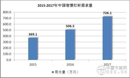 城市道路照明是城市公共設施的重要組成部分,而隨著城鎮(zhèn)化建設的推進,城市道路照明路燈的數(shù)量越來越多,能耗越來越高,供電趨于緊張。此外,城市照明的維護工作和高昂的維護成本(人工控制、路燈巡查等),給城市管理造成了巨大的困難。管理部門需要更有效率的管理和節(jié)能方案,從而推進城市照明的科學管理和綠色節(jié)能。目前我國智慧燈桿應用處于試點運營階段,根據(jù)道路照明專業(yè)委員會的統(tǒng)計,在全國811座城市中已有279座城市的道路燈管控采用了“無線三遙(遙控、搖信、遙測)智能化控制系統(tǒng)”。2015-2017年我國智慧燈桿行業(yè)需求隨著物聯(lián)網(wǎng)、智慧城市建設而迅速增長,至2017年中國智慧燈桿需求量達726.1萬只,較2016年增加219.6萬只,增速達43.4%。