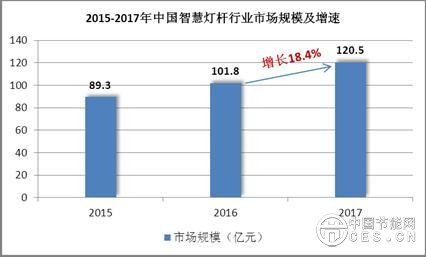 隨著物聯(lián)網(wǎng)、下一代互聯(lián)網(wǎng)、云計算等新一代信息技術的廣泛應用,智慧城市已成為必然趨勢。近年來,智慧城市新政頻出,我國各大城市掀起了智慧城市建設高潮。政府出臺了一系列政策措施推進智慧城市建設,智慧燈桿作為智慧城市建設中的重要組成部分,產(chǎn)業(yè)發(fā)展迅速。2015-2017年中國智慧燈桿行業(yè)市場規(guī)模穩(wěn)步提升,年復合增速達10.5%,到2017年達到120.5億元,較2016年增長18.4%,增速較2016年同期增長4.4個百分點。