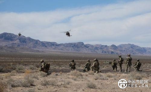 資料圖:美國特種部隊士兵和兩架UH-60直升機在內(nèi)達華州軍事基地進行訓練
