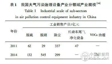 生產(chǎn)鏈主要包括除塵、脫硫、脫硝、VOCs治理、機(jī)動(dòng)車尾氣凈化設(shè)備的生產(chǎn),目前脫硫、脫硝、除塵是生產(chǎn)鏈的三大核心板塊。2011年,大氣污染治理設(shè)備生產(chǎn)企業(yè)占生產(chǎn)環(huán)保產(chǎn)品企業(yè)的32%,大氣污染治理設(shè)備的工業(yè)銷售產(chǎn)值約占環(huán)保產(chǎn)品工業(yè)銷售總產(chǎn)值的37%。“十二五”期間,各細(xì)分領(lǐng)域包括煙氣脫硫工藝配套設(shè)備、煙氣脫硝工藝配套設(shè)備等產(chǎn)值都有較大的提高,除塵設(shè)備略有下降( 表1) 。