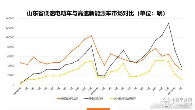 通過山東四輪低速電動(dòng)車的產(chǎn)量走勢圖與高速純電動(dòng)車乘用車及A00級純電動(dòng)乘用車對比可以看出,在經(jīng)歷了2018年年底的沖量高峰后,市場在開年出現(xiàn)慣性下滑走勢。