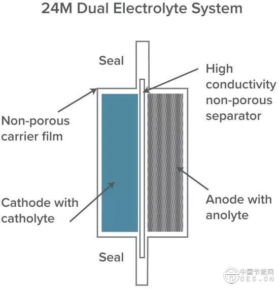 新型24M電池架構(gòu)使用離子導(dǎo)電的非滲透性隔板將負(fù)極電解液與正極電解液隔離,同時(shí)消除了迄今為止困擾全固態(tài)電池的固 - 固界面問題。