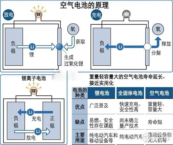 在新一代電池的開發(fā)競爭中,安全、充電時間短的全固體電池被認為正在接近實用化??諝怆姵仉m然在高速充電和壽命方面不及全固體電池,但是具有輕量、潛能大的特點。豐田正加緊把搭載全固體電池的純電動汽車(EV)推向?qū)嵱没?,一方面,也正致力于開發(fā)空氣電池。