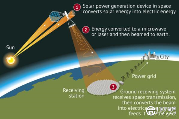 太陽能會轉(zhuǎn)化為電力,而微波或激光束會把能量傳輸回地球。