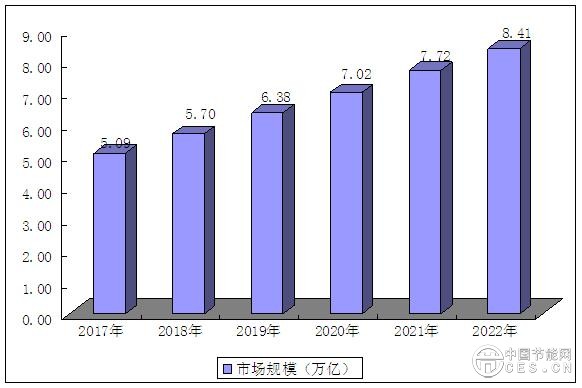 圖表:2017-2022年我國節(jié)能環(huán)保行業(yè)市場規(guī)模預測
