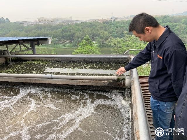 一位員工在四會市廣東歐利雅公司的污水處理池前檢查設備。新華社記者壯錦 攝