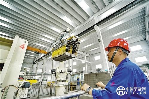 中鹽安徽紅四方新型建材科技有限公司在工業(yè)副產(chǎn)品石膏綜合利用關(guān)鍵技術(shù)上取得重大突破,整個生產(chǎn)過程節(jié)能、節(jié)水,無廢渣、廢水、廢氣排放,每年可將上百萬噸工業(yè)副產(chǎn)品石膏、電石渣、粉煤灰等固廢“吃干榨凈”。圖為該公司在合肥循環(huán)經(jīng)濟(jì)示范園的液壓磚機(jī)車間。 許慶勇攝(中經(jīng)視覺)