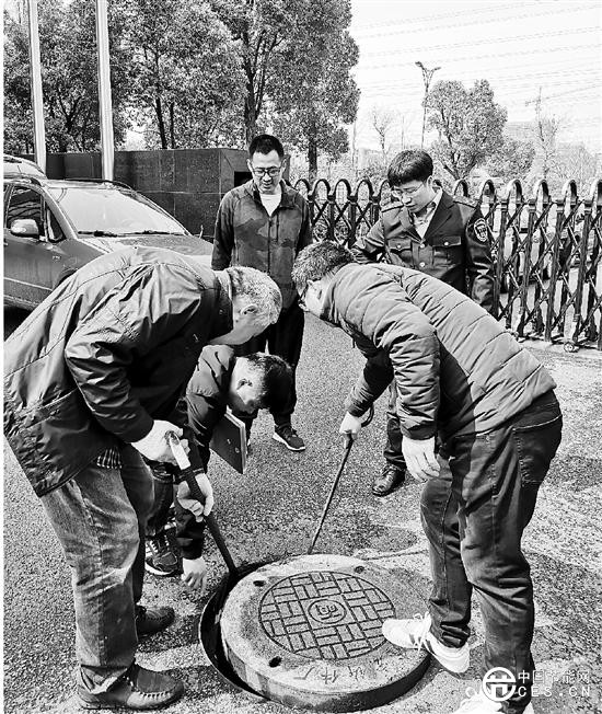 這次檢查,便是隨機(jī)抽查。一行人來到艾迪機(jī)器(杭州)有限公司,翻開窖井蓋,查看雨污分流情況。