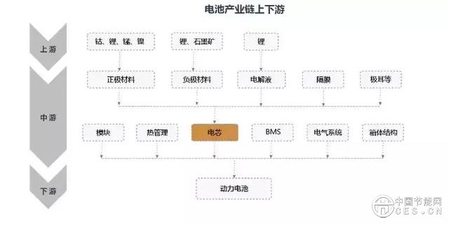 動力電池產(chǎn)業(yè)鏈主要由鋰礦資源、鋰電池原材料以及電芯制造與封裝構(gòu)成,其中鋰電池原材料包括正極材料、負極材料、隔膜、電解液。