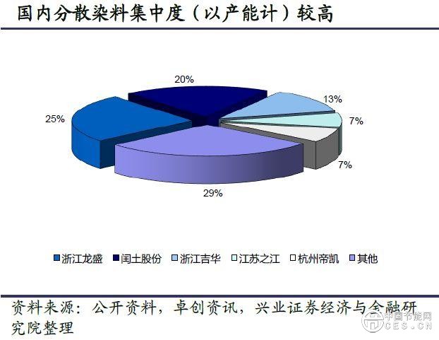 興業(yè)證券認(rèn)為,從更長遠(yuǎn)角度看,江蘇省作為國內(nèi)染料重要生產(chǎn)基地的地位預(yù)計將被削弱,染料行業(yè)中的中小染料及染料中間體生產(chǎn)企業(yè)生存空間持續(xù)被壓縮,染料龍頭企業(yè)因同行退出以及自身中間體配套完善而獲得更強的話語權(quán),行業(yè)秩序已經(jīng)發(fā)生顯著改變。