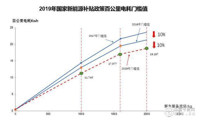 對(duì)于純電動(dòng)汽車而言,有一個(gè)非常重要指標(biāo):百公里電耗。簡(jiǎn)單理解就是,在特定工況下,行駛100公里所需要消耗的電量。以下是最近三年國(guó)家新能源汽車補(bǔ)貼政策中,對(duì)于電池能量密度的要求,從圖中可以發(fā)現(xiàn),每年的門檻值相對(duì)前一年都要提升10%,足以見得,國(guó)家對(duì)于電動(dòng)汽車的電耗水平是非常重視的。