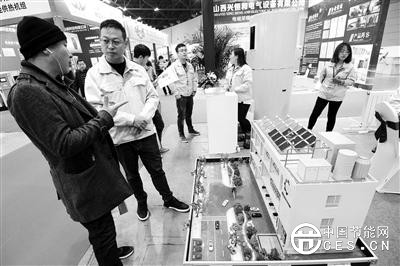 2019中國(山西)暖通展覽會、可再生能源博覽會上,觀眾正在了解太陽能在城市建筑中的應(yīng)用。本報記者 高在中 攝