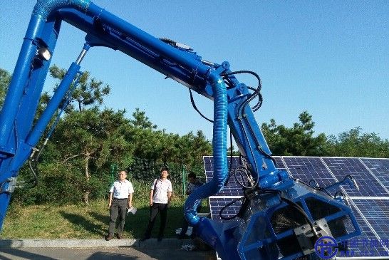 9月10日下午,青島昱臣智能機(jī)器人有限公司在中國(guó)青島發(fā)布國(guó)內(nèi)首臺(tái)無(wú)水光伏組件智能清潔機(jī)器人。據(jù)悉,該機(jī)器人由底盤(pán)及行走機(jī)構(gòu)、多自由度液壓機(jī)器臂、職能末端執(zhí)行器系統(tǒng)等部分組成,實(shí)現(xiàn)了無(wú)水清洗,無(wú)熱斑生產(chǎn),制動(dòng)化程度高,清潔效果好等特點(diǎn)。