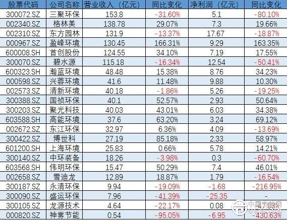 三聚環(huán)保(300072.SZ)、東方園林(002310.SZ)和碧水源(300070.SZ)這三家營收超百億元的環(huán)保企業(yè),也出現(xiàn)營收和凈利雙降。
