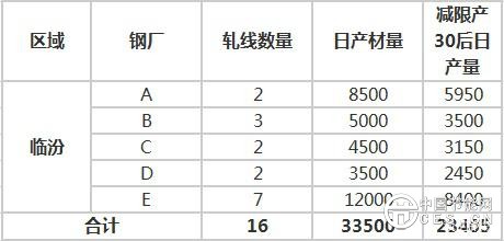 此次重點企業(yè)實施春夏季重點管控,主要針對臨汾區(qū)域,其他市場延續(xù)前期環(huán)保舉措限產(chǎn)。山西省長期流通資源鋼廠主要有14家,本次涉及到的鋼廠高爐總計46座,容積總計35010m,產(chǎn)材總產(chǎn)能約在4260萬噸,詳細請見下表: