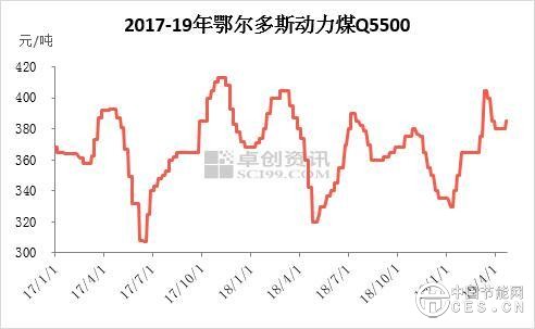 圖 2 2017-2019年鄂爾多斯動力煤Q5500價格