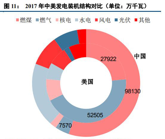1.3、發(fā)電側(cè):中美火電占比均高,結(jié)構(gòu)調(diào)整進(jìn)行中