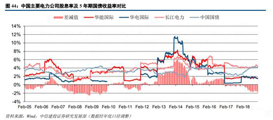 對(duì)于中國(guó)電力公司而言,其股息率走勢(shì)與國(guó)債收益率相關(guān)性較差。一方面華能華電等火電企業(yè)由于盈利能力受煤價(jià)影響呈現(xiàn)大幅波動(dòng),股息率波動(dòng)范圍較大且不夠穩(wěn)定;另一方面A股投資者對(duì)于股息率的重視程度低于美股投資者,這也體現(xiàn)在中國(guó)的三家公司股息率均值減去國(guó)債收益率的差減值波動(dòng)范圍較大,不夠穩(wěn)定。