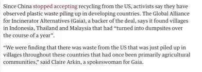 所以,美國方面其實還是認(rèn)為發(fā)達(dá)國家的塑料垃圾,應(yīng)該丟給發(fā)展中國家去處理。