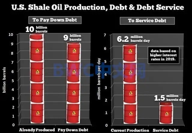 一旦沒有全球最具前景和影響力客戶的支持,美國頁巖企業(yè)的債務(wù)或都將難以償還。例如,據(jù)卡利尼什能源顧問公司報告,到2023年,美國將有2400億美元的長期與能源生產(chǎn)有關(guān)的債務(wù)到期,而其中至少約90%與頁巖油有關(guān),其中相當(dāng)一部分2019年底到期。