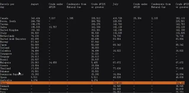 例如,根據(jù)美國人口普查局公布的數(shù)據(jù)顯示,僅在去年8月時,中國進(jìn)口美國原油量已經(jīng)削減至零。另據(jù)據(jù)俄羅斯衛(wèi)星通訊社報道,美國向中國出口的液化天然氣已穩(wěn)步下降,去年8月前沒有超過100萬噸,而到去年9月時,中國采購商完全停購了美國的液化天然氣。
