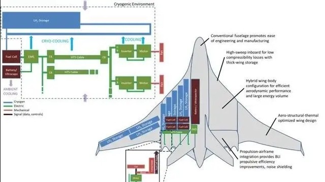 "氫化學(xué)能通過一系列燃料電池轉(zhuǎn)換為電能,驅(qū)動(dòng)超高效電力推進(jìn)系統(tǒng)。氫系統(tǒng)的低溫要求也提供了使用超導(dǎo)或無損耗能量傳輸和大功率電機(jī)系統(tǒng)的機(jī)會(huì)。"安塞爾補(bǔ)充道:"這與磁共振成像的工作原理類似。"然而,這些必要的電力傳動(dòng)系統(tǒng)尚不存在,將電力驅(qū)動(dòng)推進(jìn)技術(shù)集成到飛機(jī)平臺(tái)的方法尚未有效建立。該項(xiàng)目旨在解決這一差距,并在技術(shù)方面做出基礎(chǔ)性貢獻(xiàn),使未來的全電動(dòng)飛機(jī)成為可能。